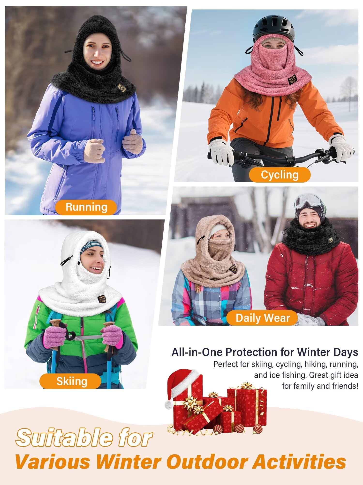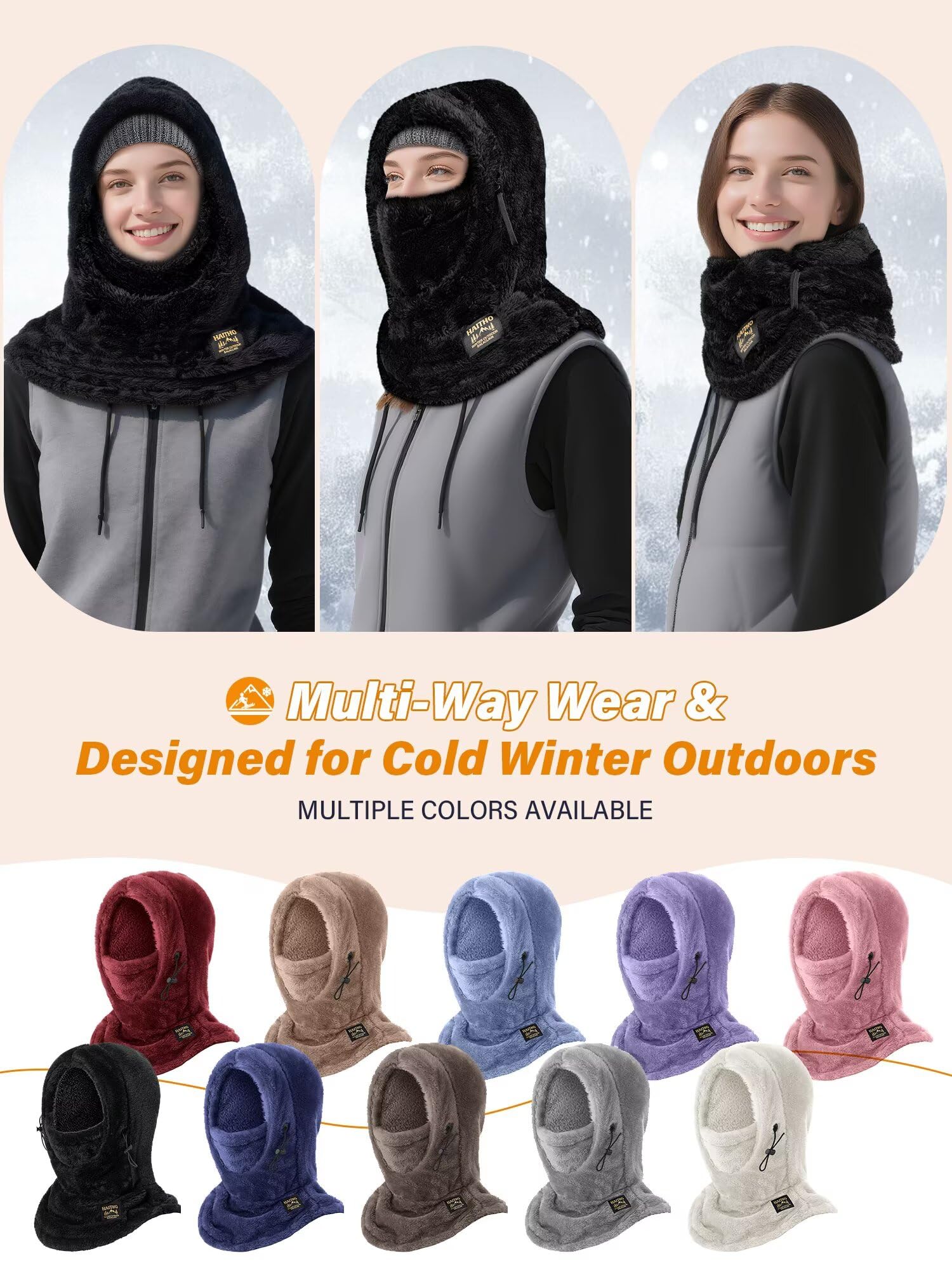 - 【3-in-1 Multi-Functional Design】: The HAITHO balaclava features an integrated design that simultaneously protects your head, face, and neck from sun, dust and cold winds, keeping you warm and comfortable in cold weather. It can also be easily transformed into a neck gaiter, half-face mask, or a combined head and neck cover, as snowboard gear, offering flexible switching for the best wearing experience.